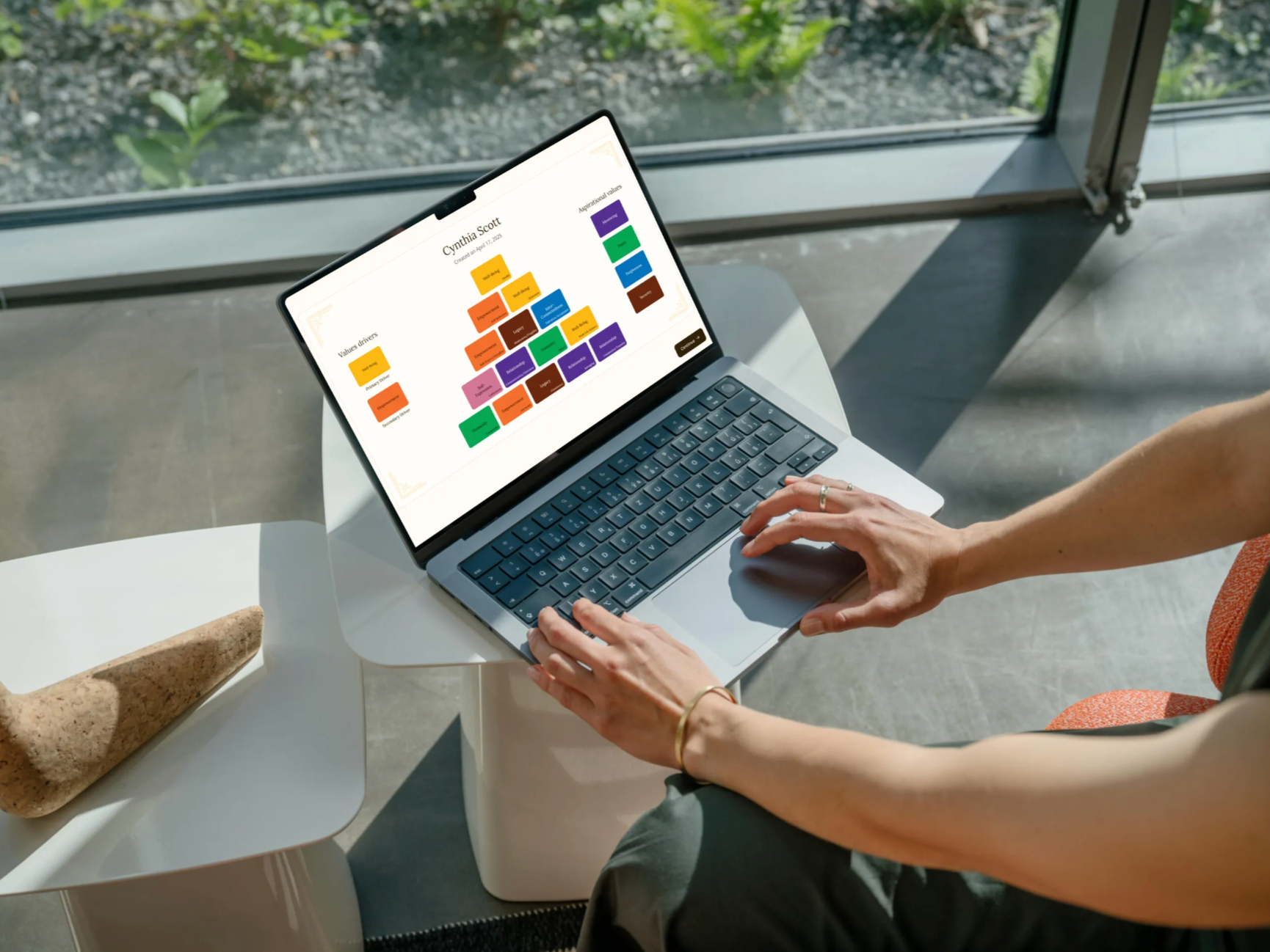 Self-paced interactive online process to identify and clarify core values for individuals and groups, teams and families.